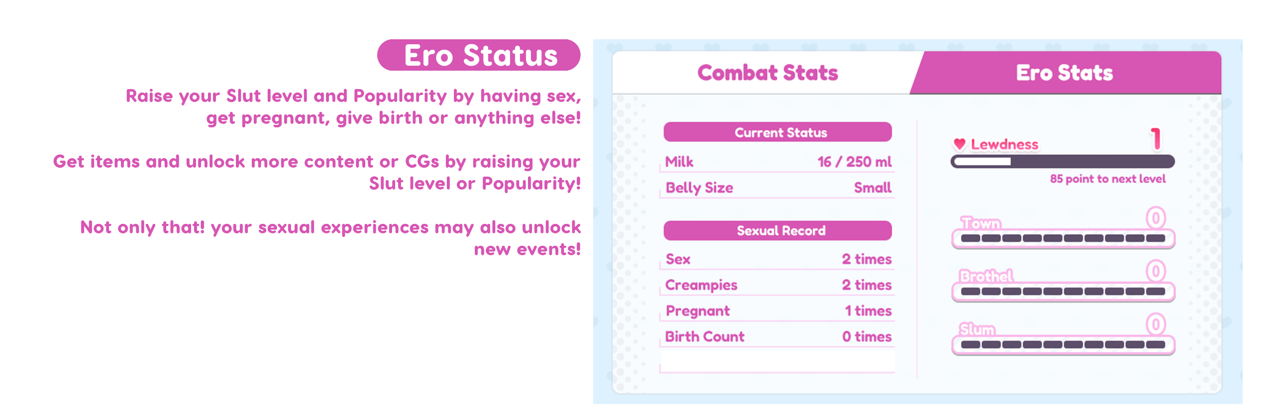 Enjoy a brand new H-RPG experience crafted with passion and care, featuring a fully customized UI designed for smooth exploration and combat,